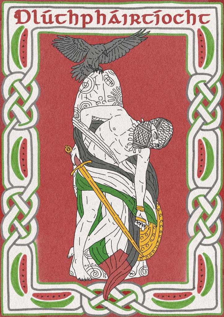 Most importantly, Dlúthpháirtíocht: Irish Solidarity with Palestine is a form of action. It is a way that you can interact, learn, and contribute financially to the project, with all profits being donated to Dignity for Palestinians, a charity run by UNRWA doctor Musallam Abukhalil, on the ground in central Gaza.