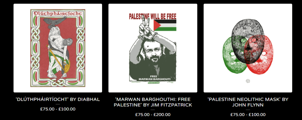 Dlúthpháirtíocht artwork is available for sale at this link. All profits generated from sales are donated directly to Dignity for Palestine, our charity partner, who are working on the ground in Gaza.